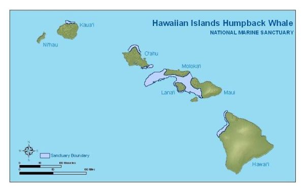 The Hawaiian Islands Humpback Whale Marine Sanctuary is a collection of protected waters throughout the Hawaiian Islands. The protected area safeguards the winter breeding grounds for over half of the population of north Pacific humpback whales.